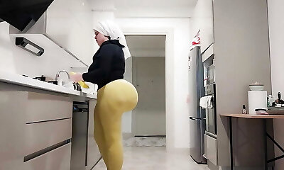 Crazy chubby loves to tear up in the kitchen with the neighbor