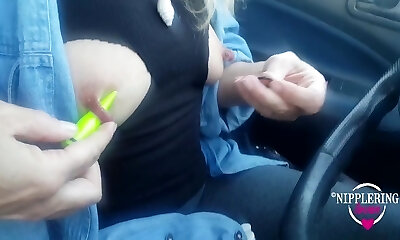 Nippleringlover Horny Milf Flashing Pierced Tits In Car Handcuffs On Extraordinary Pierced Nipples