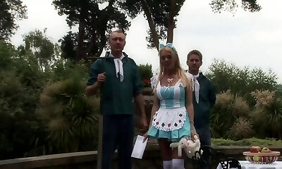 Horny babe with big hooters gets fucked outdoors in an astounding mmf threesome