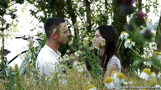 Adorable blond nymph lets a man lick and pound her vulva in missionary stance