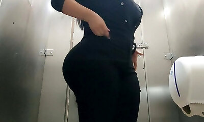 sexy Mexican girl with a big butt takes off all her clothes in the bathroom in her office and demonstrates her fantastic ass part tw